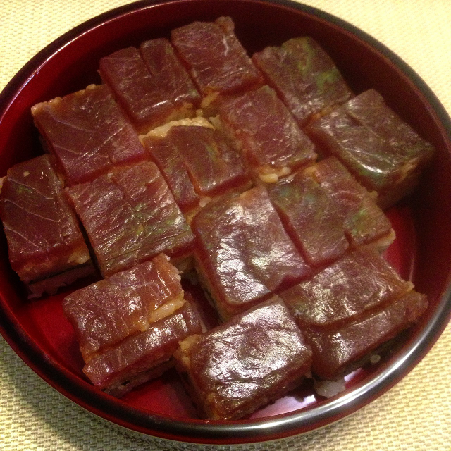 今日はマグロの押し寿司です。