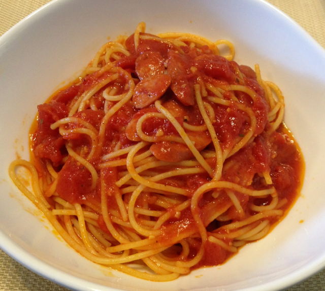 トマトソーススパゲティを作りました。